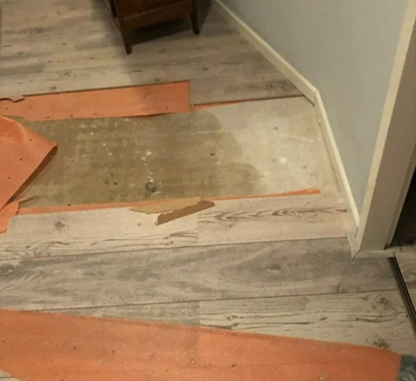 - Linoleum of PVC vloeren die loslaten door vochtschade
